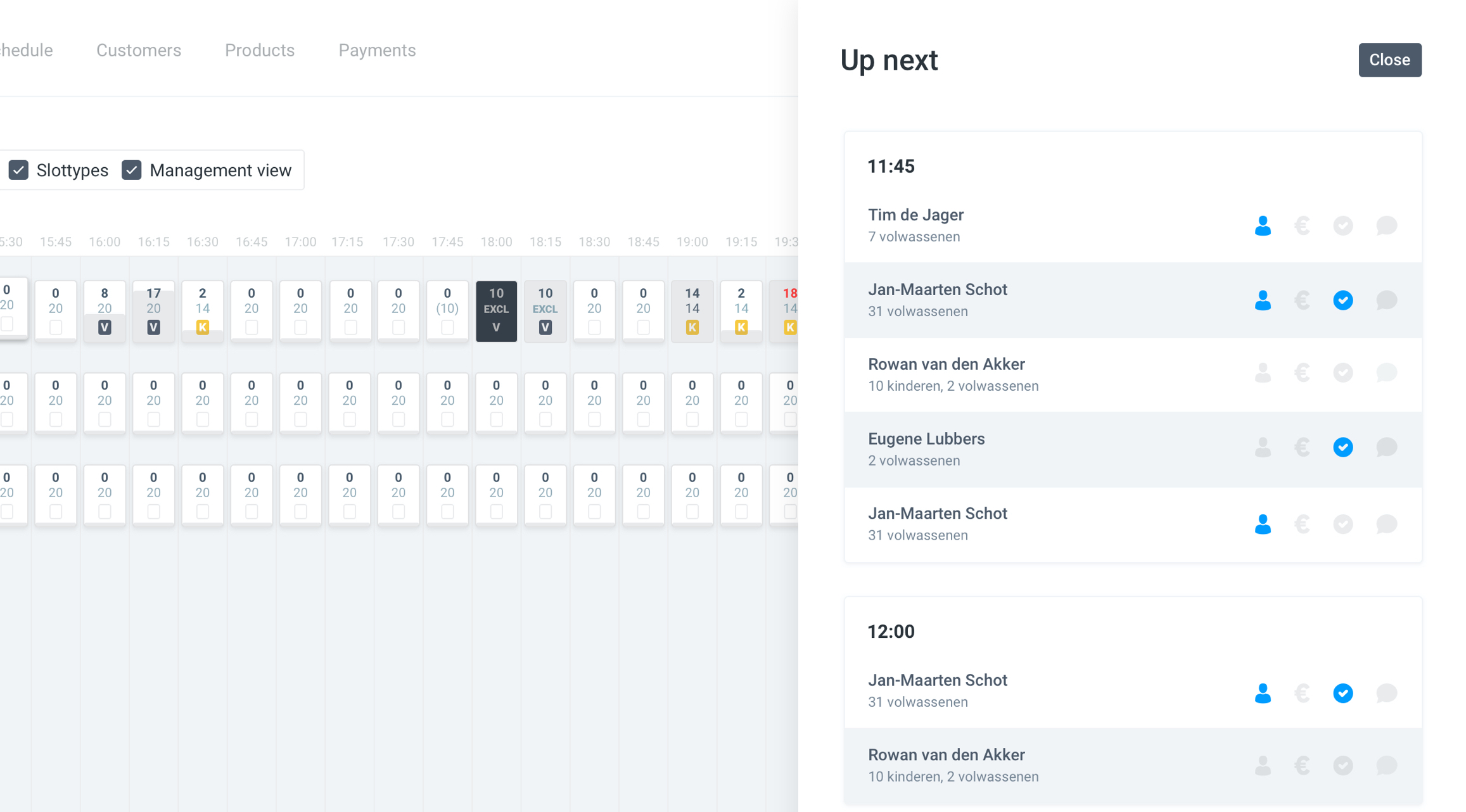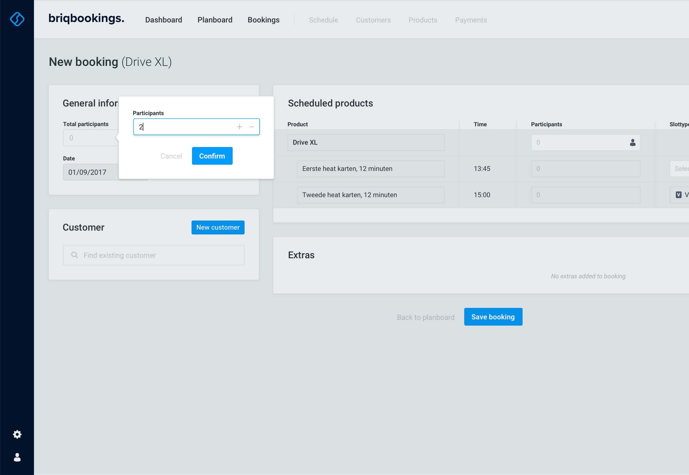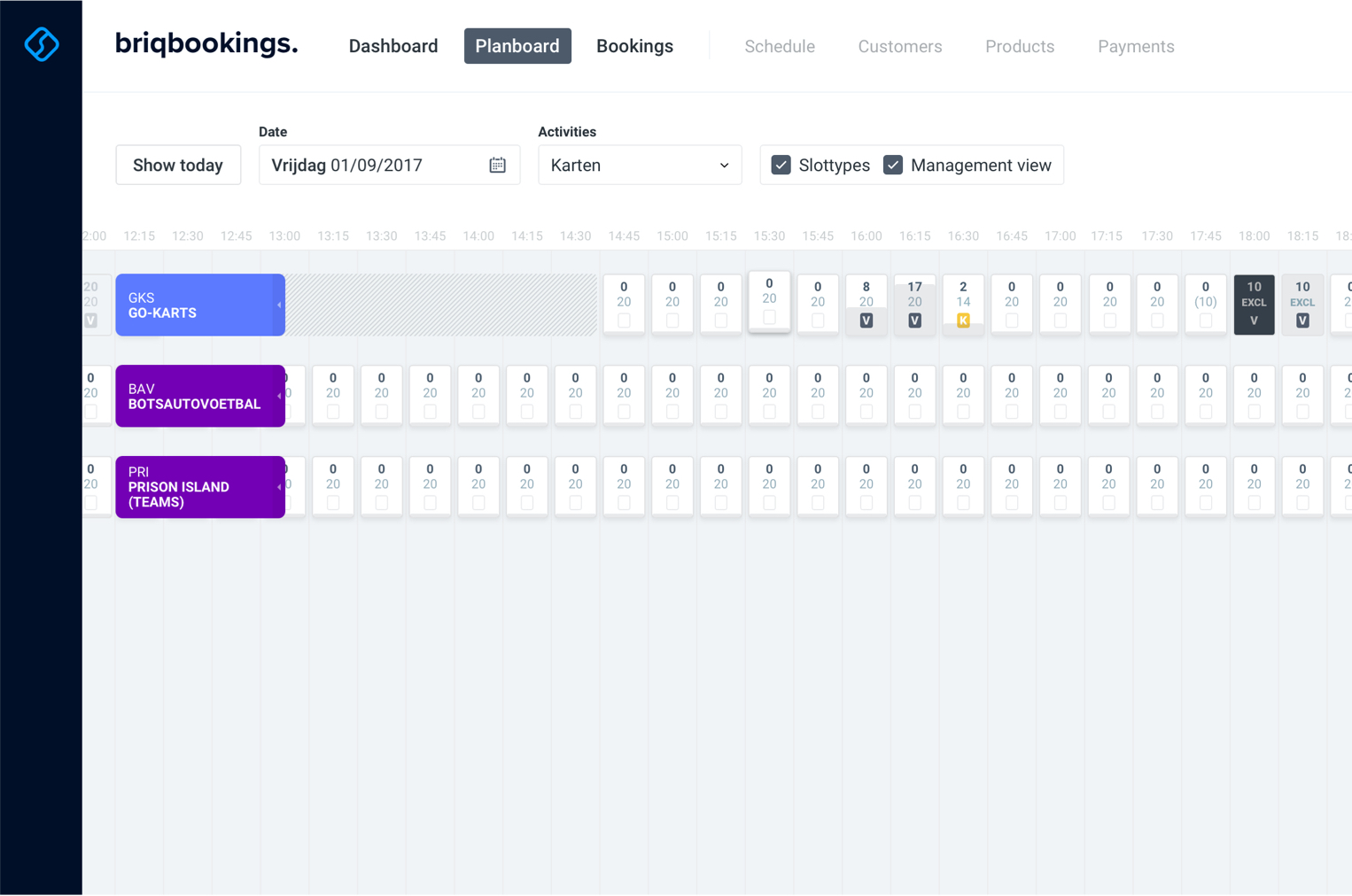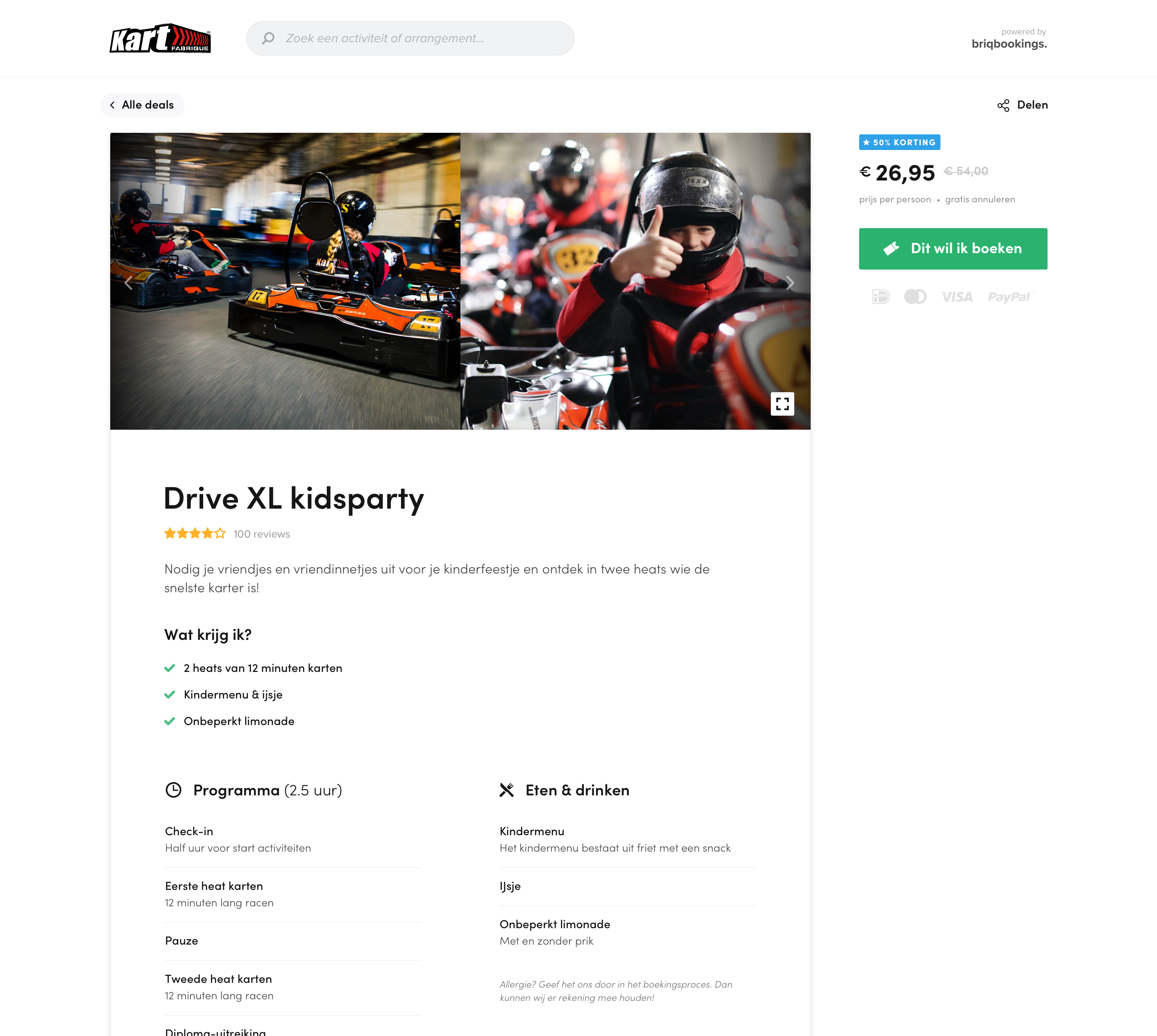 Waar "App" het hart van Briq is, is "Shop" het gezicht van Briq. In Briq Shop heeft de eindgebruiker de volledige controle over zijn boeking. De gebruiker kiest eenvoudig een starttijd van de activiteiten en vult de boeking aan met relevante extra's.
