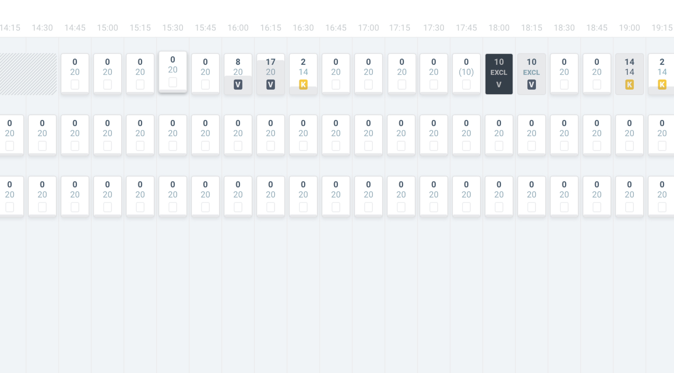 De software zoals hiernaast afgebeeld (planboard) wordt ook gebruik door receptie- en salesmedewerkers om handmatig boekingen te beheren.
