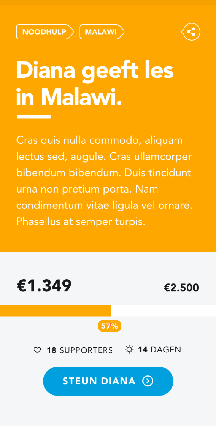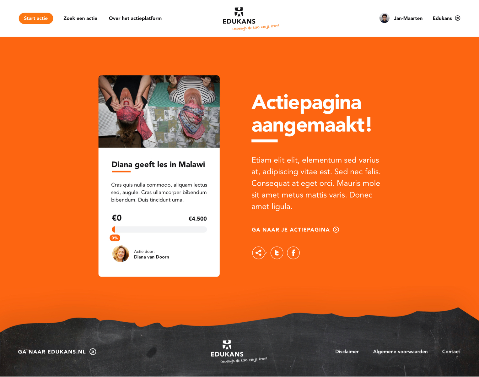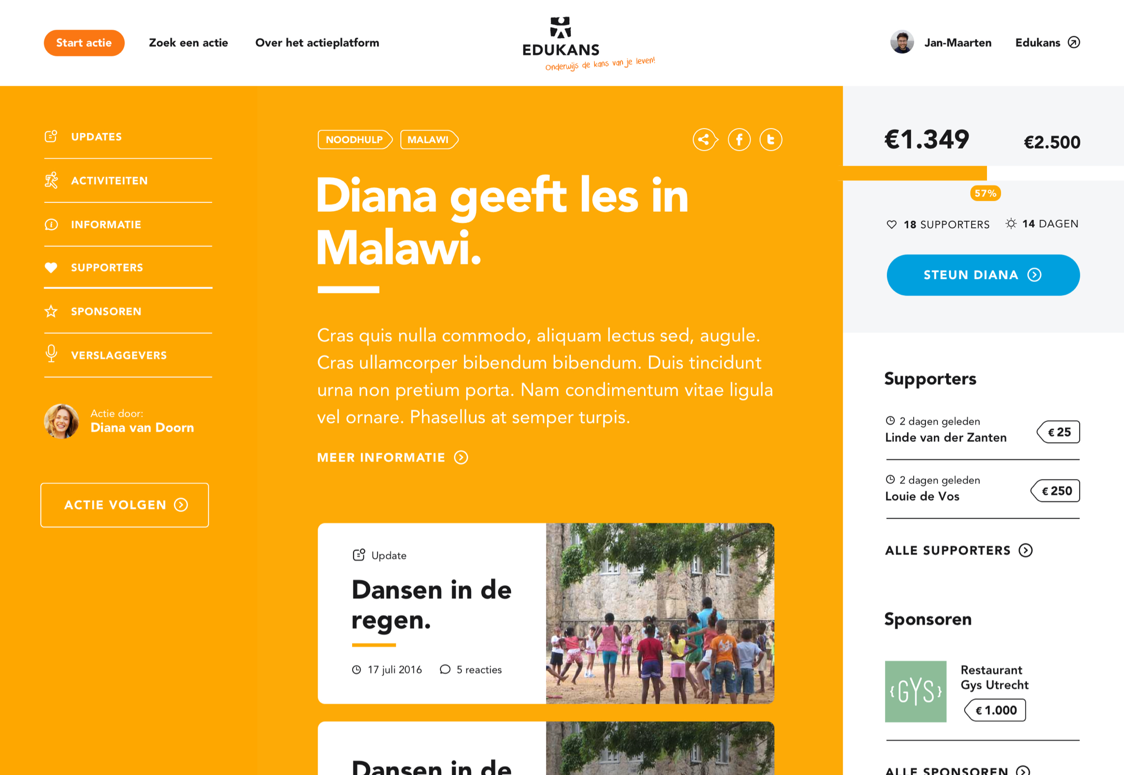 De gebruiker kiest een project waar hij voor in actie wil komen. Na het aanmaken van de actie kan de crowdfunding van start gaan, familie, vrienden en buren worden ingeschakeld om het streefbedrag te behalen.