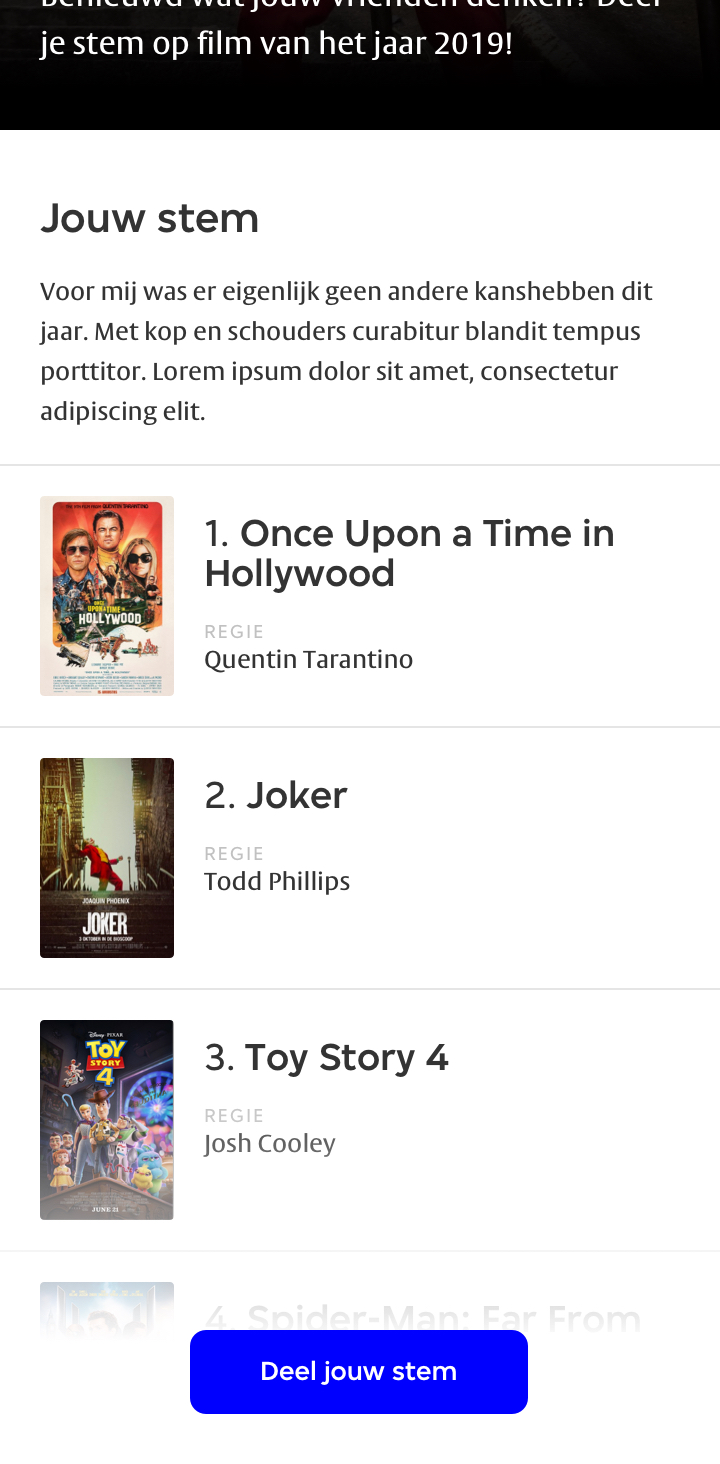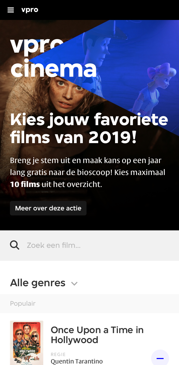 Een gebruiksvriendelijke stemtool voor de VPRO Cinema film van het jaar verkiezing.