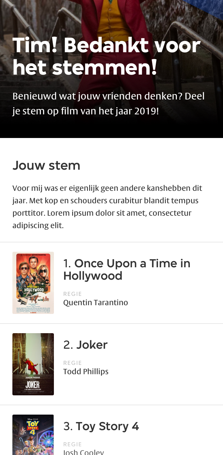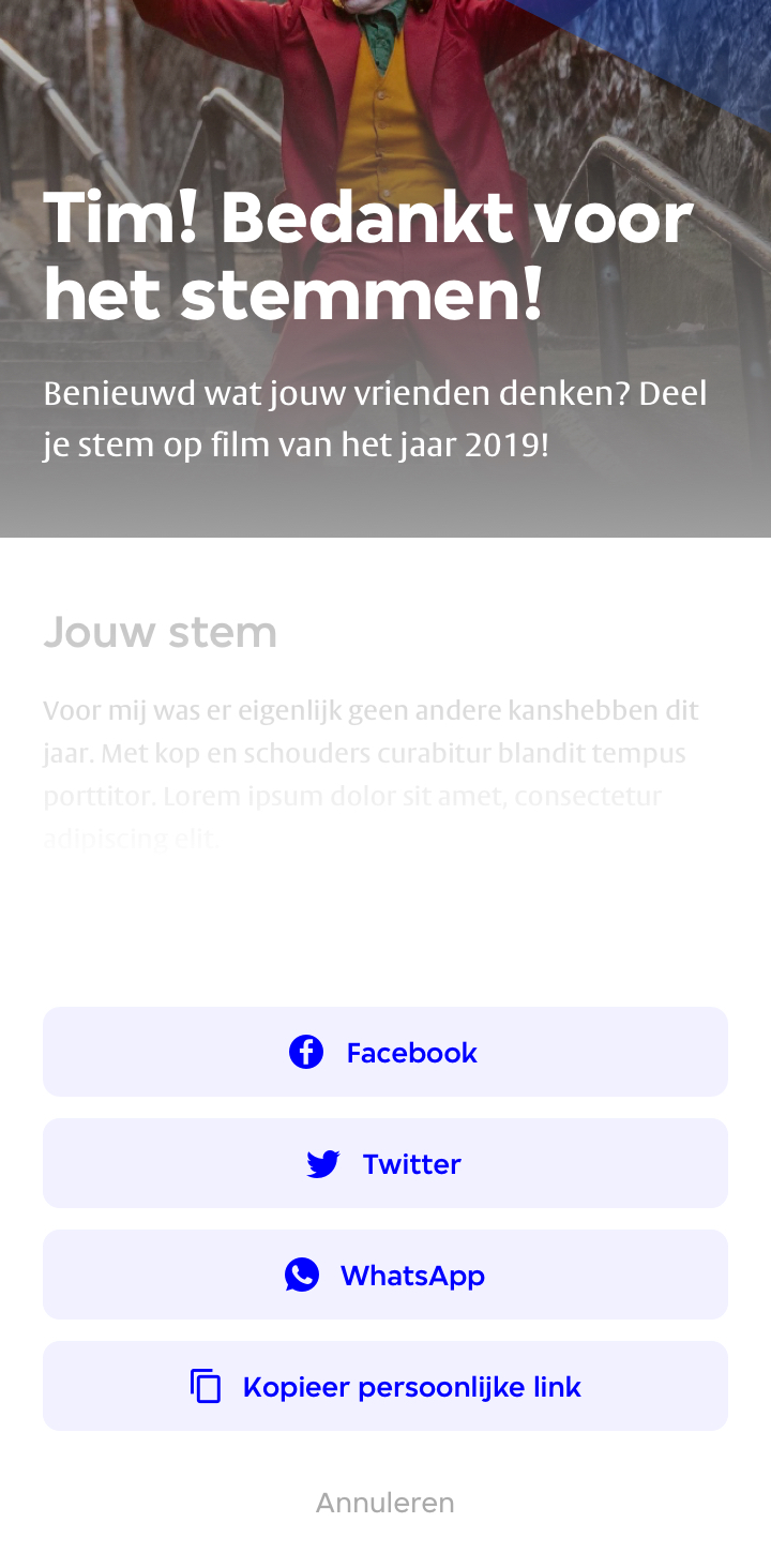 Stem uitgebracht? Dan ontvang je een persoonlijke pagina welke je direct kan delen met je vrienden.